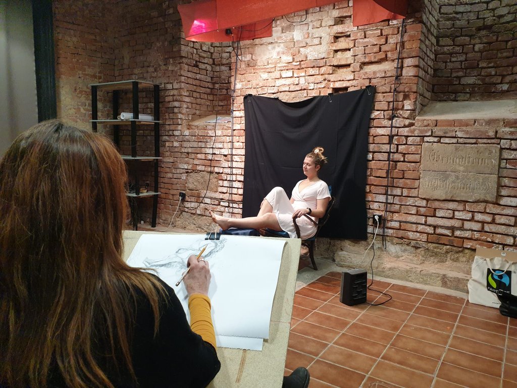 Přijďte si jen tak kreslit podle živého modelu a užít si večerní atmosféry našeho ateliéru. K dispozici jsou papíry, uhle, tužky. Není to klasická výuka s lektorem, ale spíše setkání u kresby... Nicméně lektor je zde přítomen pro případné konzultace a rady. Vhodné pro každého, kdo si chce vyzkoušet nebo zdokonalit svou kresbu postavy a pobýt v přátelské tvůrčí atmosféře. Na baru je možnost zakoupení alko i nealko nápojů a občerstvení.